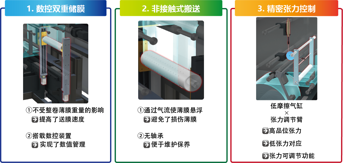 准备了“高速间歇胶卷搬送装置(卷对卷/Roll to Roll)”实验机。这是对要求“基材变形严格的材料”和“极低张力”的客户有效的实验装置。另外,在实机制作时,我们也会应对各种各样的要求(onlyone系统的提案),如果有不明白的要求,请随时咨询。